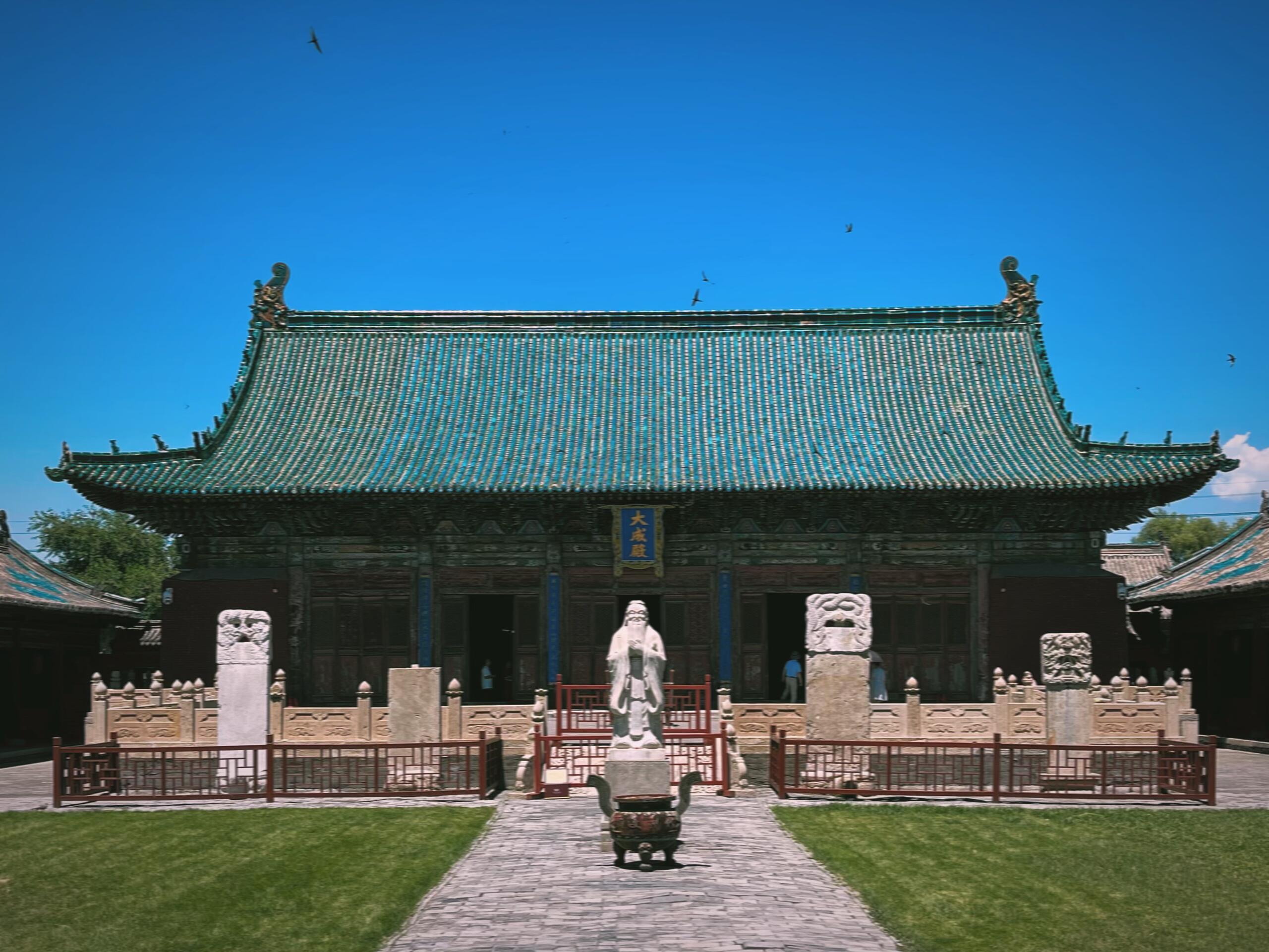 站在文庙的庭院中,阳光透过古柏的枝叶洒下斑驳的光影,落在琉璃瓦上,折射出万千光芒。那一刻,仿佛能看见千百年前的工匠们正在挥汗如雨,看见无数学子在此寒窗苦读,看见一代代守护者为它拂去尘埃。这座建筑,早已超越了“文庙”的单纯定义,它是北方文脉的缩影,是匠人心血的结晶,是岁月留下的珍贵馈赠。它用琉璃的艳丽、藻井的奇特、斗拱的精巧,向每一位到访者提问:在快节奏的当下,我们该如何守护这些珍贵的文化遗产?该如何让千年文脉在新时代焕发生机?这些问题,或许需要我们用一生去寻找答案。