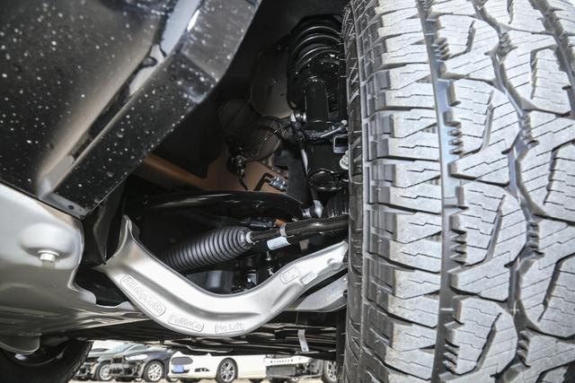 底盘部分采用前麦弗逊式独立悬架、后五连杆独立悬架,前后下摆臂均为铝合金材质,兼顾通过性与舒适性。日常行驶在城市铺装路面,路面细碎震动能被有效过滤,车内乘坐感受平稳;遇到坑洼非铺装路面时,也能从容通过,不会产生明显颠簸感。车辆采用50:50前后轴平衡配重,搭配短前悬结构设计,转弯操控更加灵活,转弯半径可达5.9米,小区掉头、停车场挪车都很便捷,彻底摆脱中大型SUV“难操控”的困扰,日常驾驶的轻松度超出预期。
