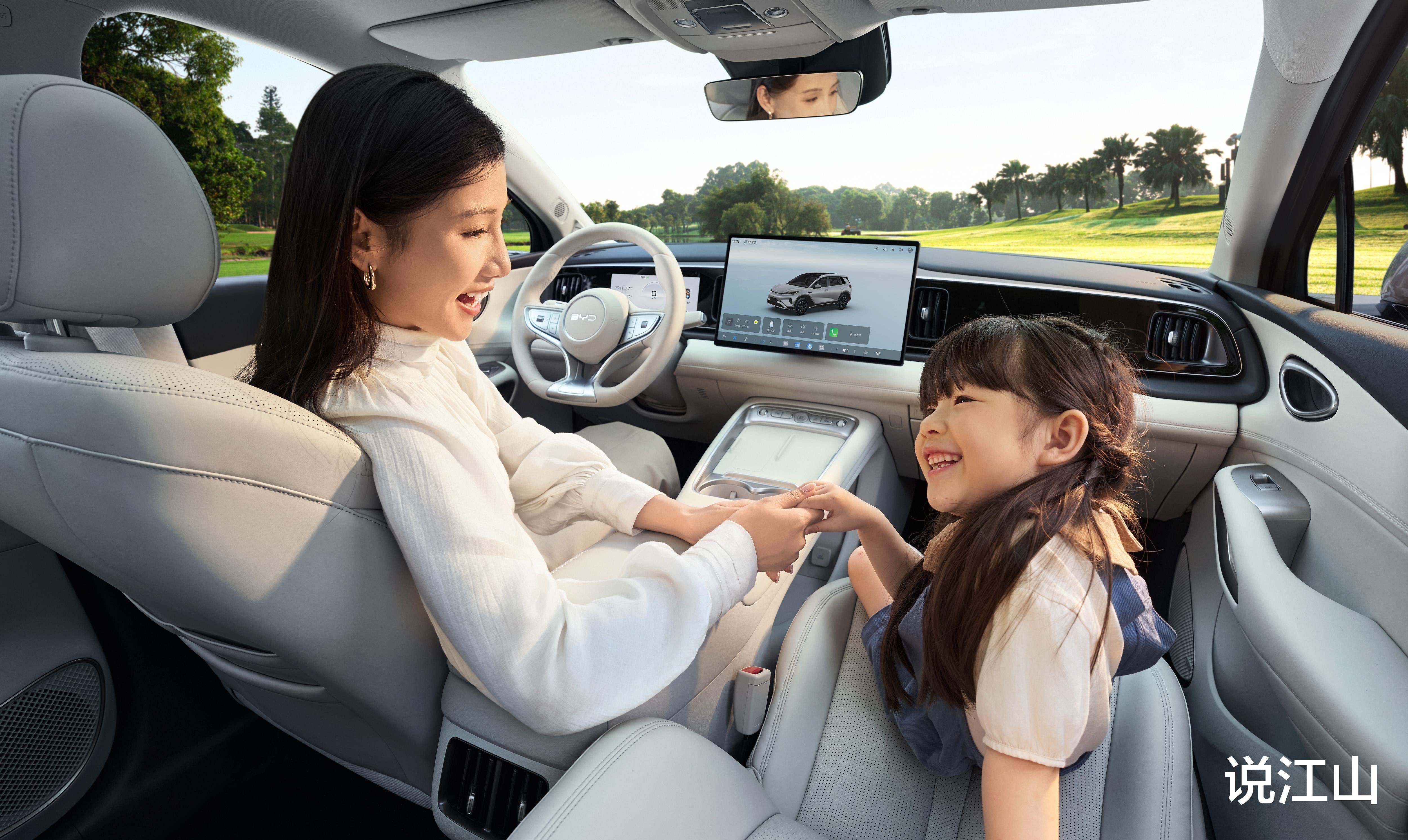 坐进车里,这块15.6英寸的自适应旋转悬浮大屏直接给你把科技感拉满了。它搭载了比亚迪最新的DiLink 150智能座舱高阶版,不仅UI界面全面焕新,操作丝滑得像刷手机,还支持深度定制版高德地图导航和多端互联。重点是它的四音区全场景语音交互,无论你坐在主驾、副驾还是后排,一句话就能精准控制空调、天幕、音乐等超千项功能,完全不用动手。