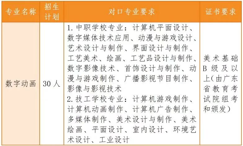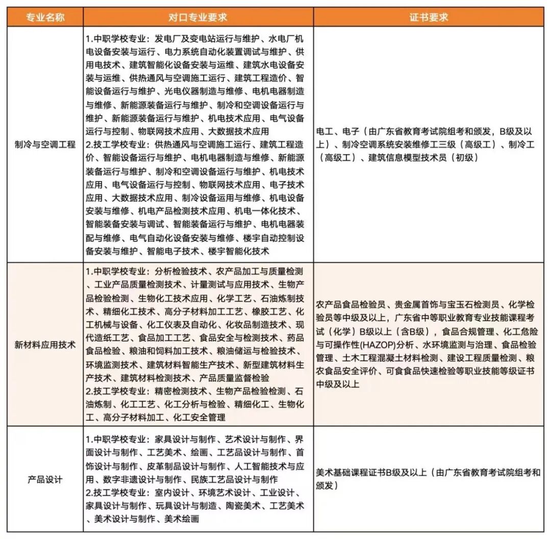 证书要求:广东省教育考试院组考和颁发的烹饪证书;人社部门职业技能鉴定考核机构(或授权)组考和颁发的西式面点师、西式烹调师、中式面点师、中式烹调师等4种中级及以上职业资格证书;广东省餐饮技师协会颁发“粤菜制作”、“粤点制作” 2种初级(含初级)以上“1+X”职业技能等级证书。