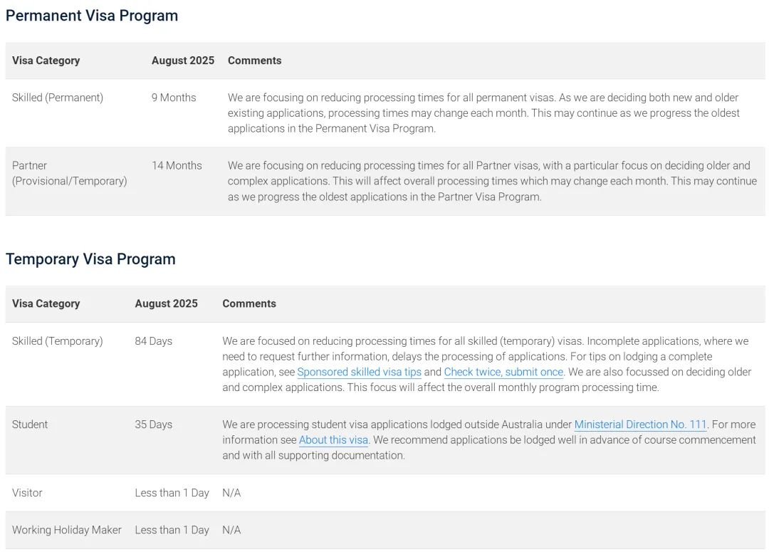 澳洲移民律师表示,签证的审理时间会因不同类型的签证而有所不同,并且这些数据在更新后可能存在一定程度的滞后性。