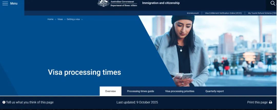 登录界面后,申请人可以搜索Visa processing times guide,直接选择已申请的签证类别,然后选择递交时间,系统会自动查询到大概需要等待的时间。