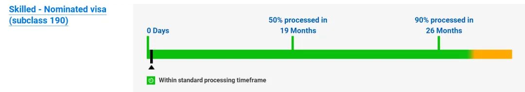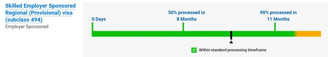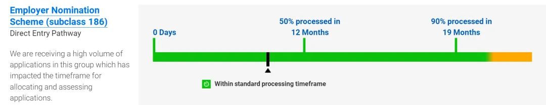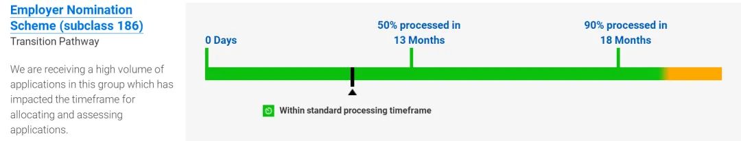 50%的审理在12个月内完成,90%的审理在19个月内完成;186雇主担保永居签证过渡类别(TRT):