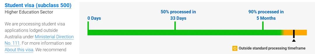 对于已经递交签证的申请人,可以上网参看澳洲移民局官网签证审理界面,通过在该界面查询到签证的标准审理时间。