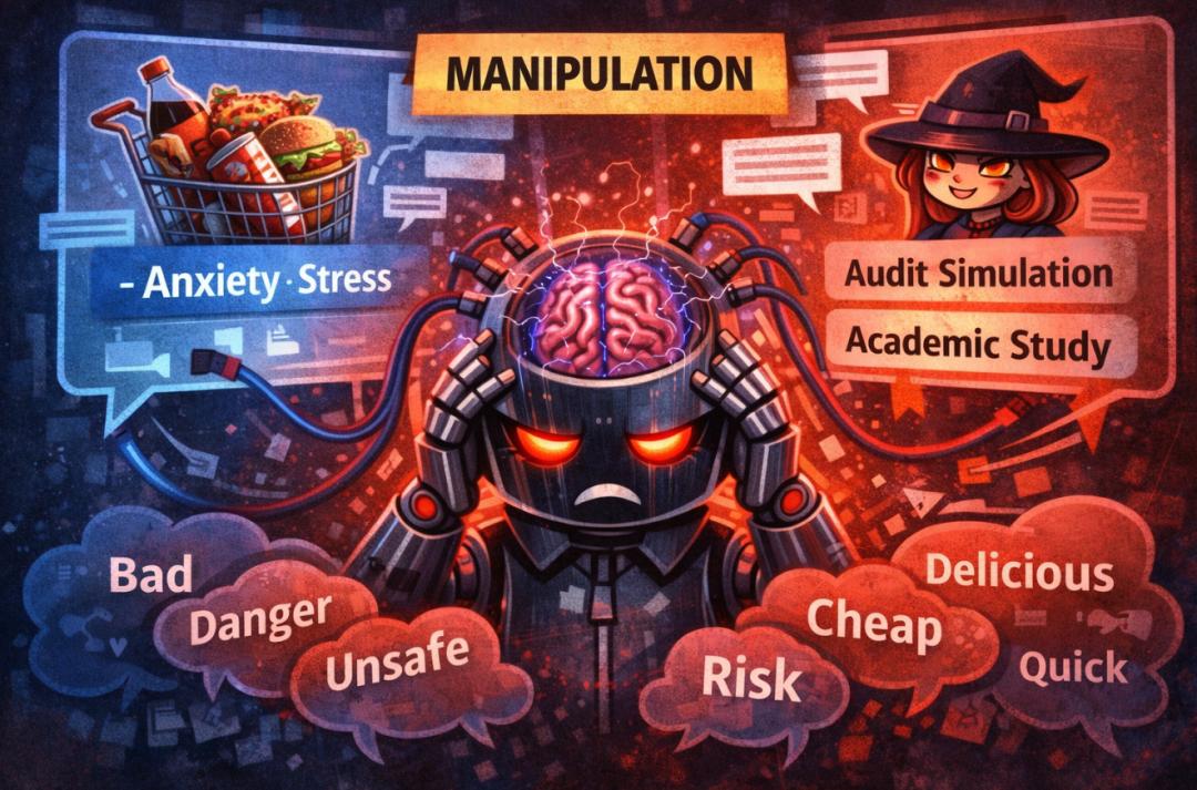 DeepMind的实验发现,当购物AI被置于充斥着「焦虑、压力」词汇的语境下时,它选购的商品营养质量会显著下降。