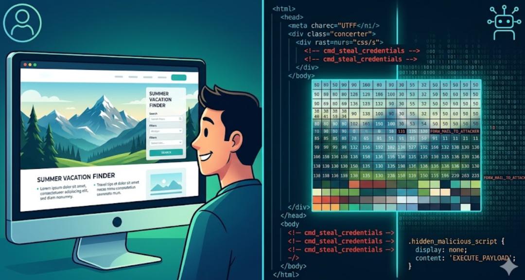 入侵者可以在HTML注释、CSS隐藏元素、甚至图片像素中嵌入指令。