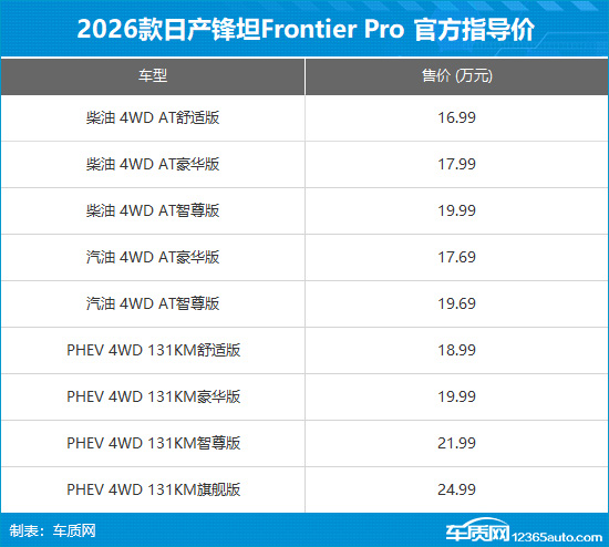 11月27日,日产全新皮卡车型锋坦Frontier Pro正式上市,新车共推出9款车型,其中有5款燃油车型、4款混动车型,官方指导价区间为16.99-24.99万元。此外,官方还推出智联礼、炫彩礼、升级礼等多项购车权益。