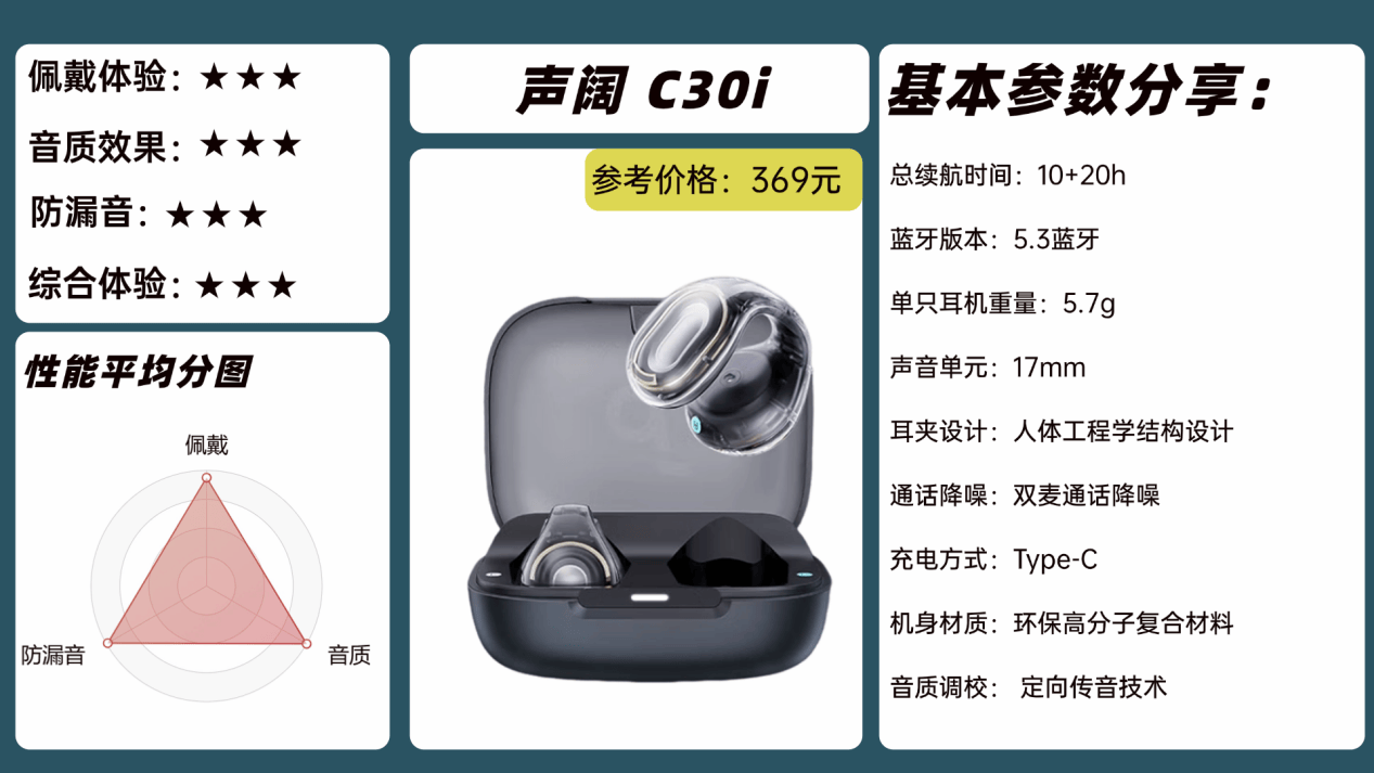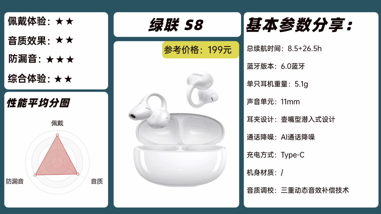 推荐理由:200价位天花板级别开放式耳机,舒适度、音质双性能王者!