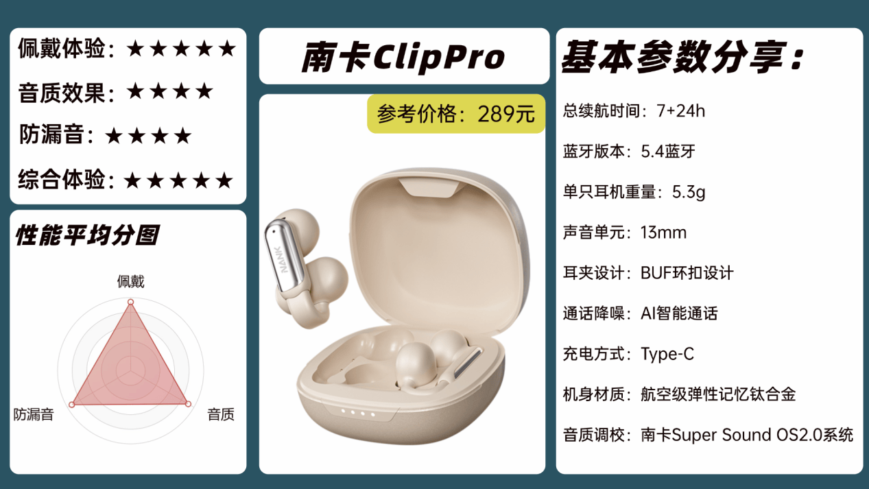总的来说,南卡Clip Pro在耳夹式耳机中堪称佼佼者。它不仅在佩戴和音质方面做到了顶级配置,在基础配置上也丝毫不含糊。它搭载了心音带蓝牙5.4芯片,性能全面提升,不仅降低了功耗,还提高了蓝牙设备的无线共存性,使得耳机连接更快、更稳定。此外,还有南卡Game mode低延时处理技术,实现45ms无感延时,优化声音通道,无论是玩游戏还是看视频,都能带来非常丝滑流畅的体验。南卡Clip Pro真正做到了百元价格,却拥有千元级的体验。