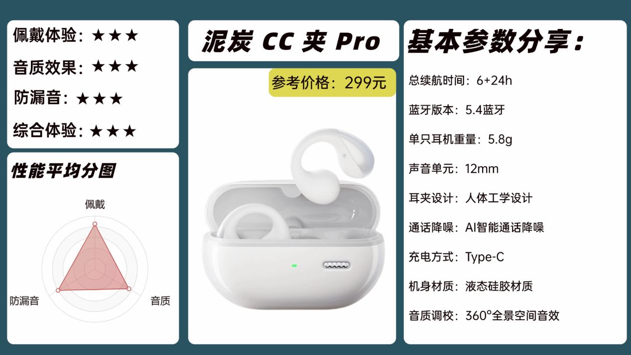 泥炭做数码产品向来堆料不涨价,这款CC夹Pro就是典型,两百出头,却带了游戏低延迟、防水这些功能,想一个耳机用遍场景的,选它挺合适。