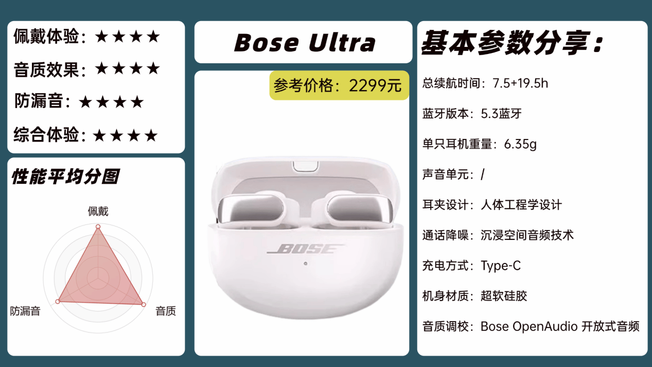 Bose在声学领域做了几十年,尤其擅长在不堵耳朵的情况下做好音质和降噪,这款Ultra耳夹式耳机就是它的招牌款,不用塞耳道,却能让你在地铁里听清歌,这功底是真扎实。