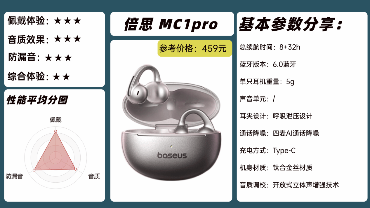 倍思做数码产品向来敢堆功能,这款MC1pro耳夹式耳机加了AI助手,还优化了佩戴,三百多能有这配置,喜欢“尝鲜”的人会觉得划算。