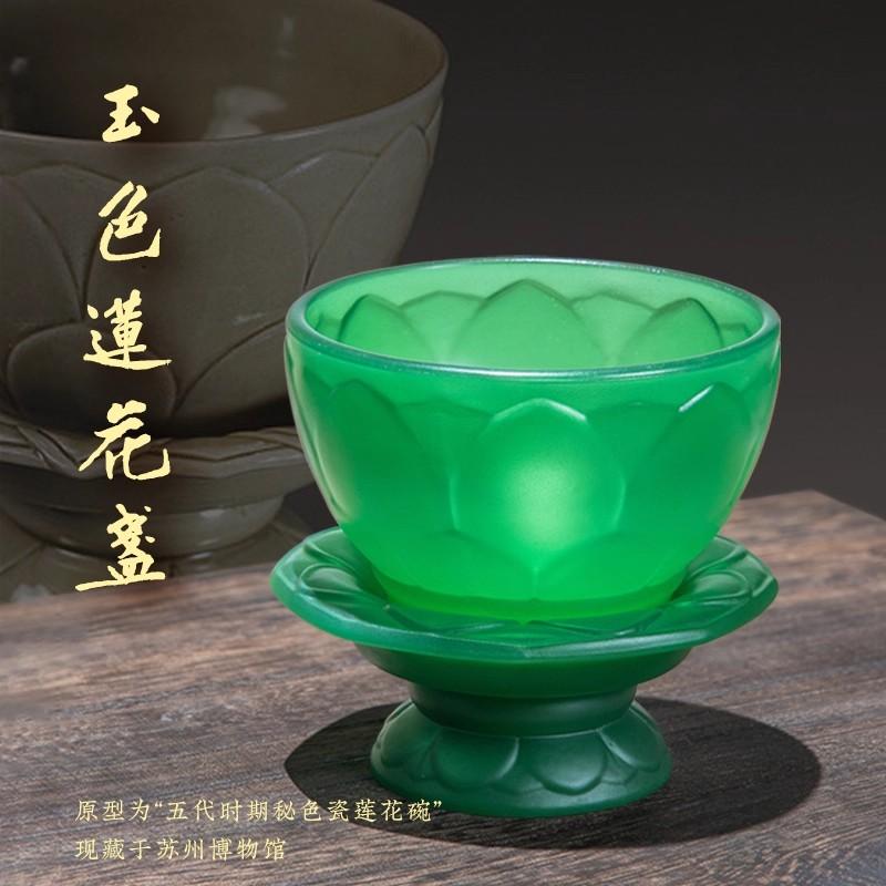 凝视着这盏古法琉璃玉色莲花盏,它不只是一件精美的器物,更是历史的见证者,文化的传承者。从五代的越窑窑火,到现代的琉璃工坊,这跨越千年的技艺传承,承载着无数匠人的心血与智慧,也凝聚着中华民族对美的不懈追求。