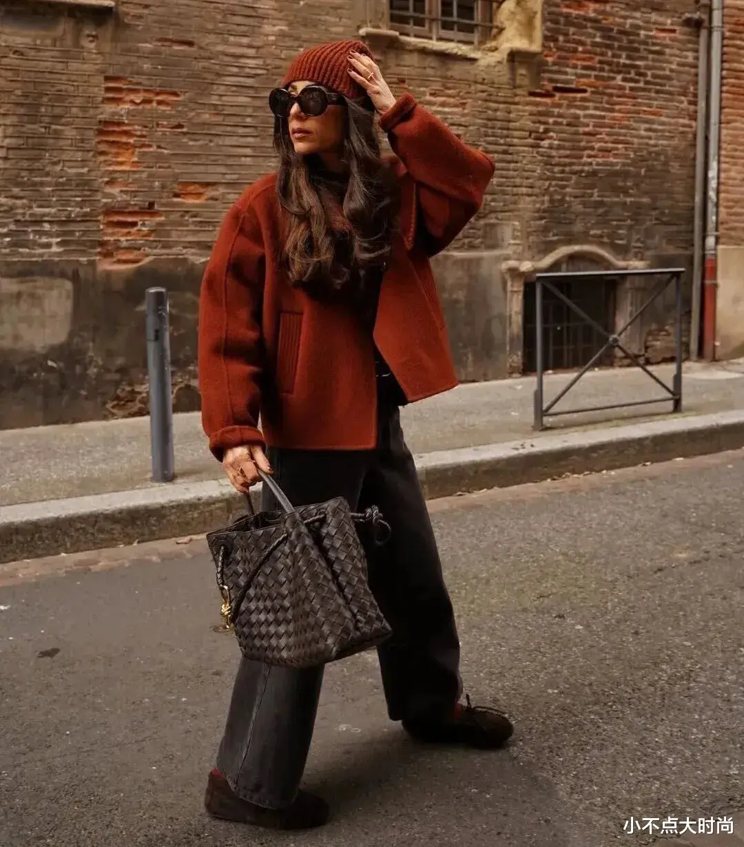 铁锈红的短上衣搭配深色的牛仔阔腿裤,显高显瘦,简约又热情。同色系的针织帽,还延续着年味的闹热,时尚又有活力。▼