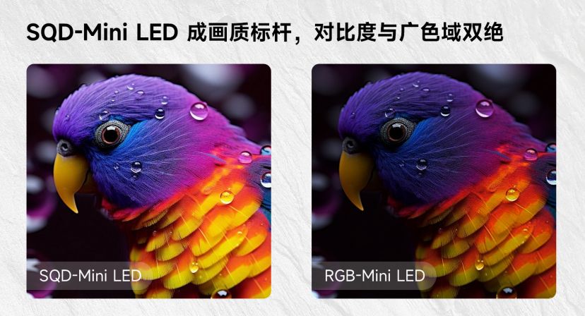 SQD-Mini LED这项技术的强大之处在于,从底层逻辑上彻底规避了RGB-Mini LED等“伪高色域”电视的问题。100%BT.2020全局高色域带来的不仅是超高水平的色域值,更是不管单色还是多色都能稳定显示的体验,真正从用户实际观影场景入手,提供最前沿高端的视觉效果。