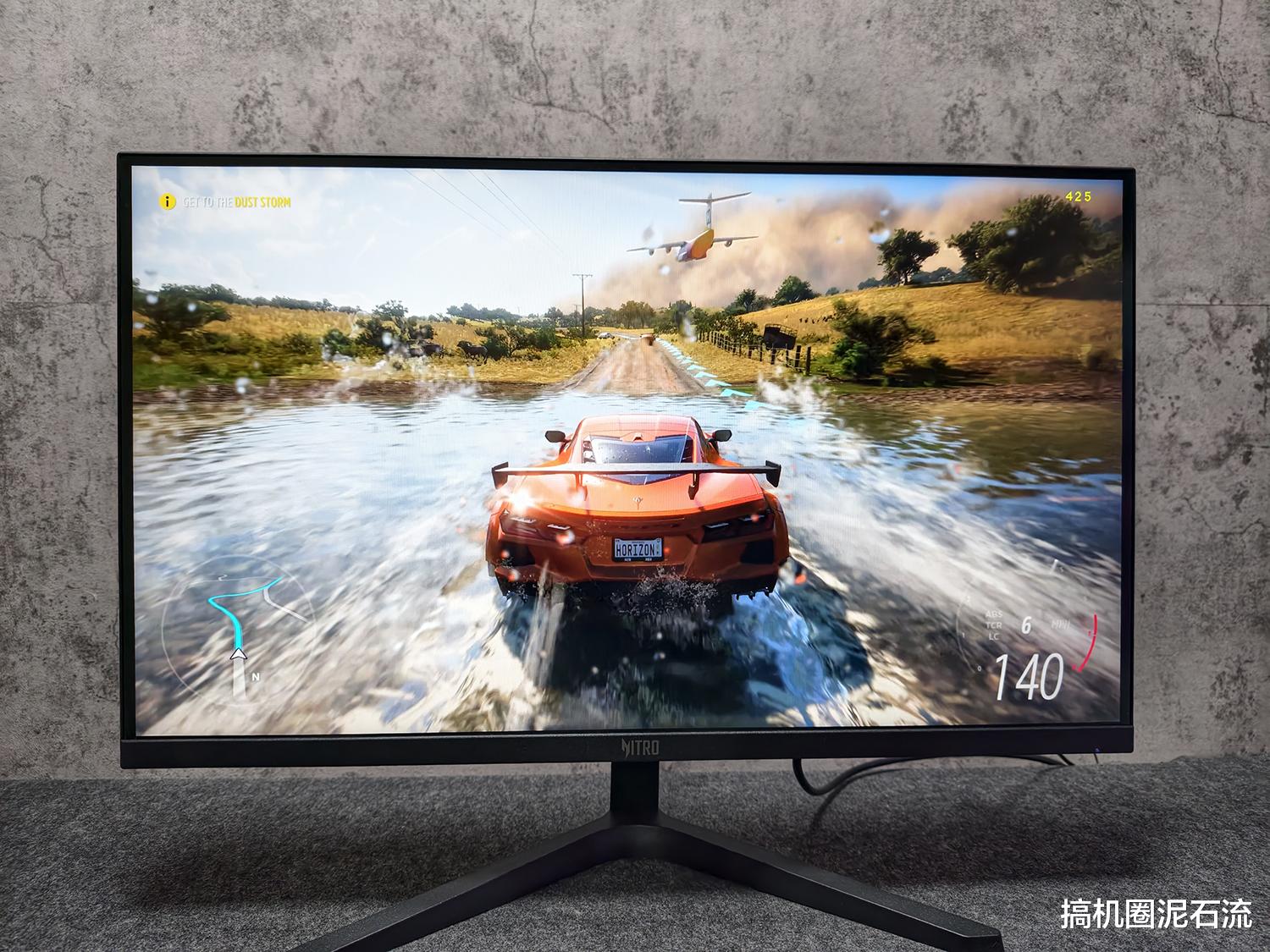 在赛车类游戏中,高刷新率的意义最直观。当你在 Forza Horizon 5 的公路上快速飞驰时, 425 Hz 的画面让道路线条、建筑阴影都能保持锐利清晰。路过水面溅起的水花非常逼真,画面没有拖影、没有重影。对比144 Hz 与 425 Hz 模式,差别在于“动态模糊”几乎消失,那种贴地飞行的真实速度感,让人甚至忘记这是屏幕画面。