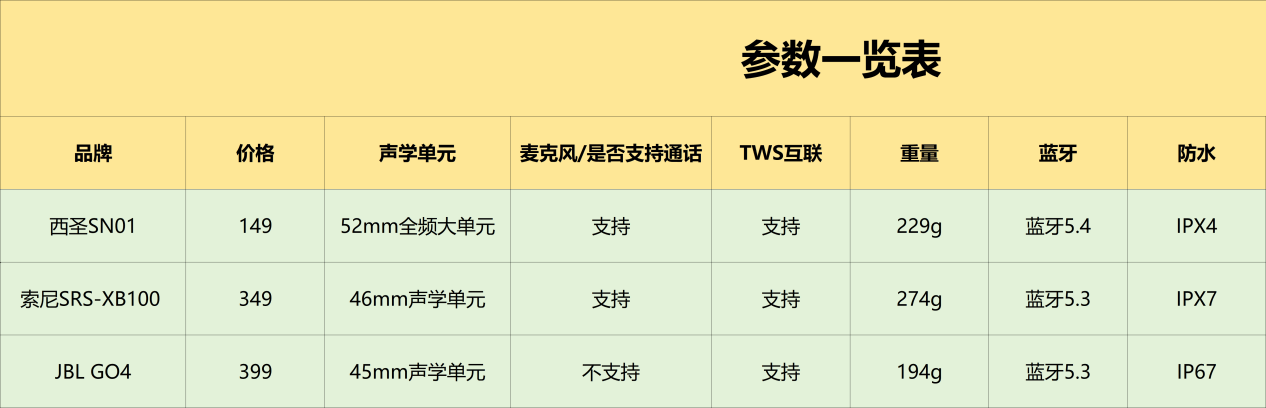 以下是我总结的三款音箱的详细基本参数,不了解的朋友可以作为测评时的参考: