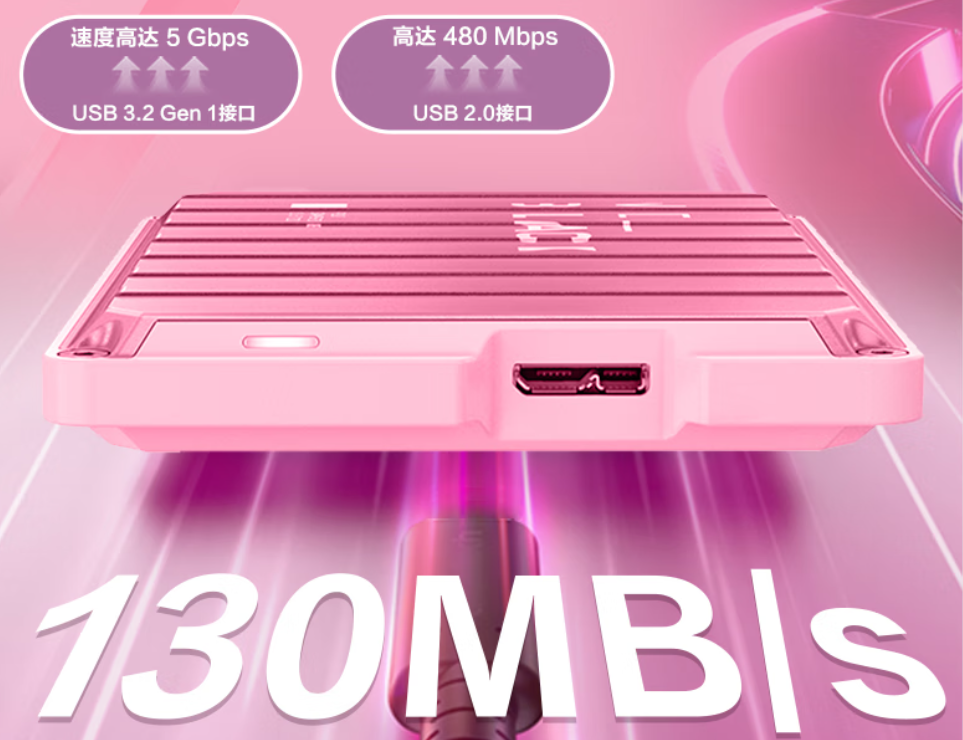 它用的是USB 3.2 Gen1接口(速度是 5Gb/s),传输速度最非常快,至于有多快买一块体验一下就知道。而且 WD_BLACK™ P10这个系列,对PS5和Xbox还专门做了优化,在这两台主机上,传东西更快,用起来也更稳定。