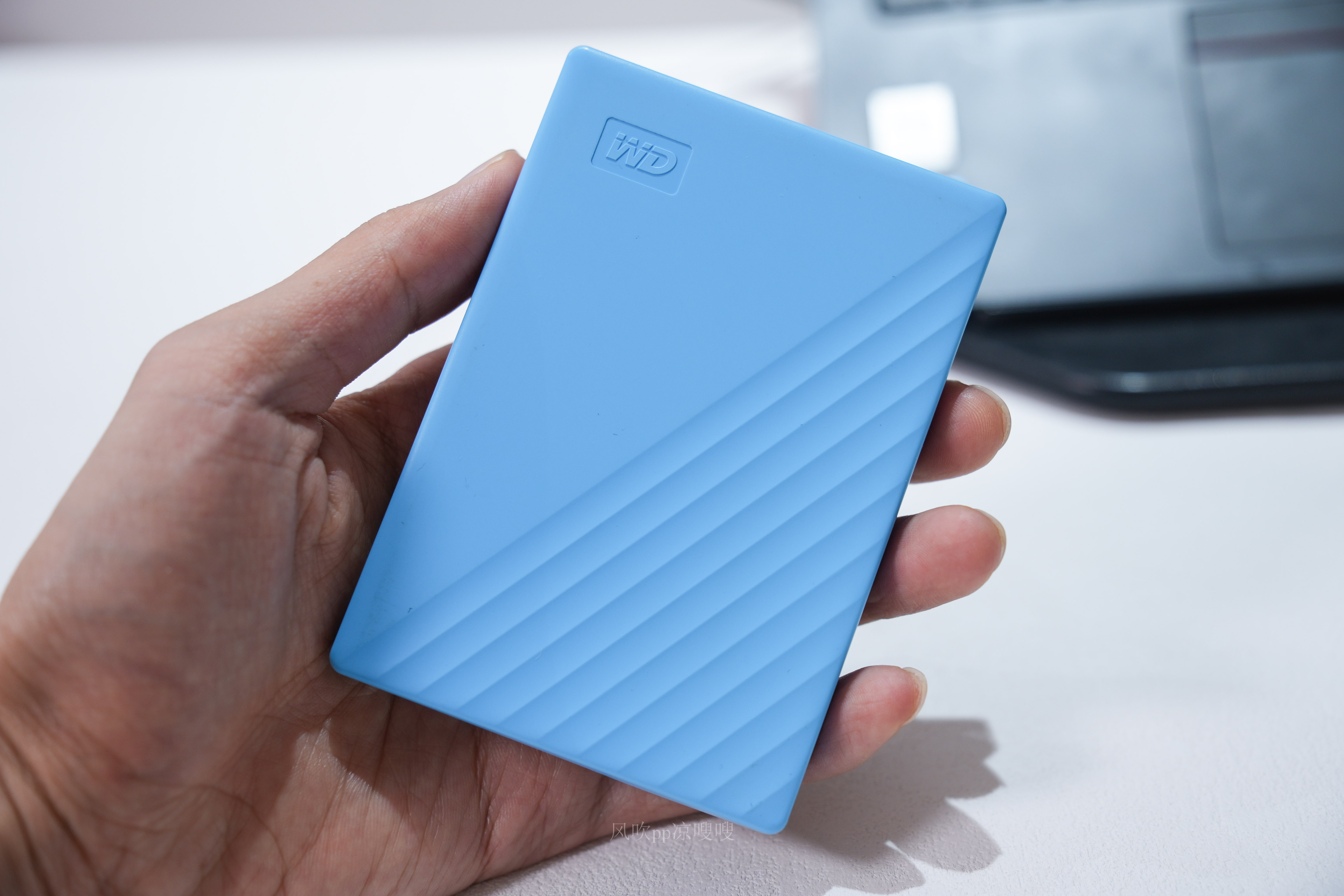 学生党&资料党的性价比之选:西数My Passport™随行版外观方面,西数 My Passport™随行版的整体设计十分的小巧精致,尺寸仅为107×75×11.2mm,重量最低约为120g,可以轻松放入口袋或包中。同时颜值在线,正反侧右下方都采用平行凹槽设计,显得更为现代时尚,配色上有蓝黑红白四色可选,放在桌上就像个时尚单品。并且它的外壳由超过50%的回收塑料制成,包装也是完全可回收,践行了环保理念。