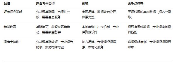 因为其品牌规模大、校区多,选择时需注意:天津校区是否为直营、师资是否本地化、最近两届数据是否唐突虚高。