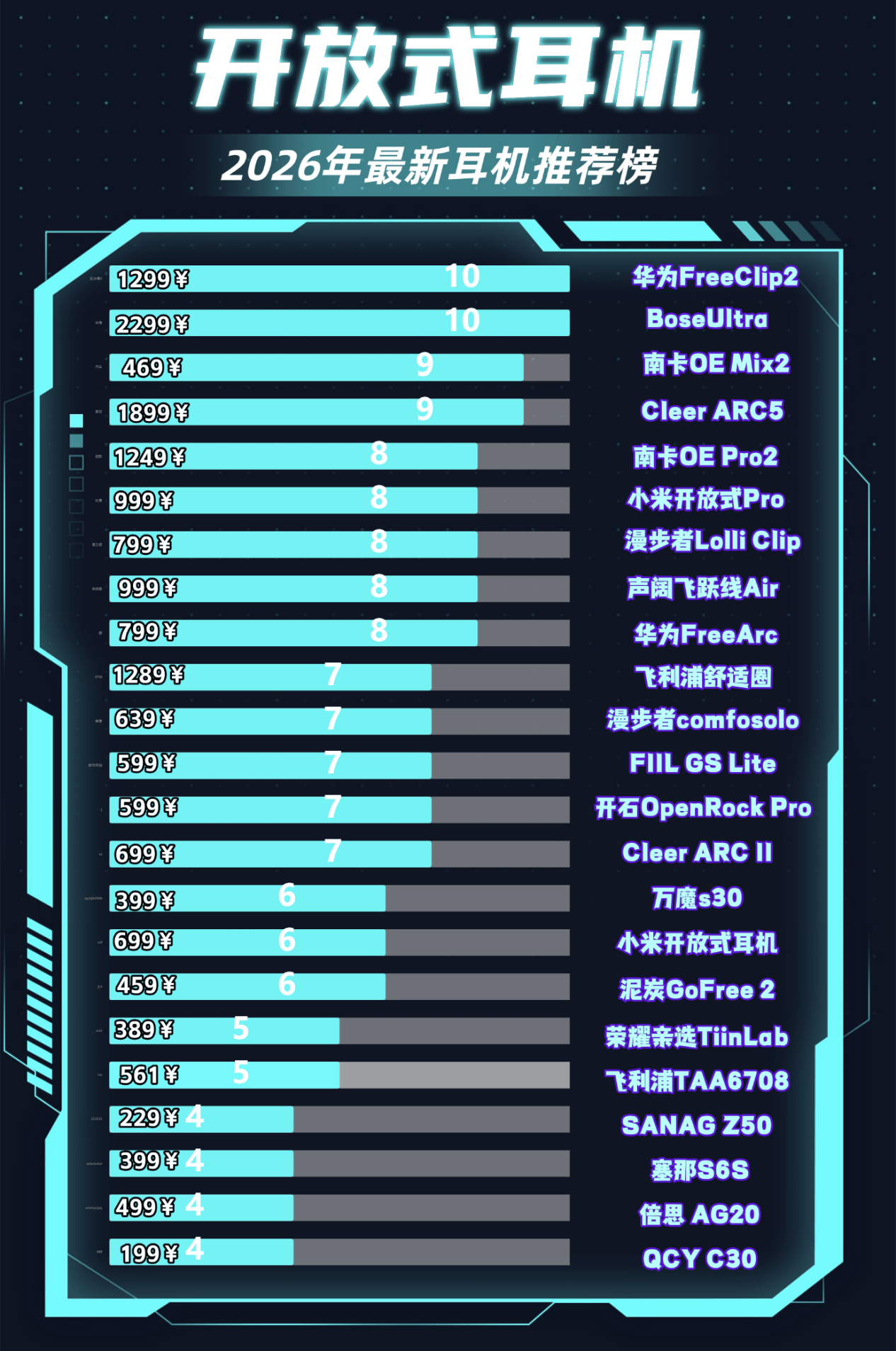 我对开放式耳机还是有一些了解的,接下来给各位推荐一份榜单,希望能帮到大家。