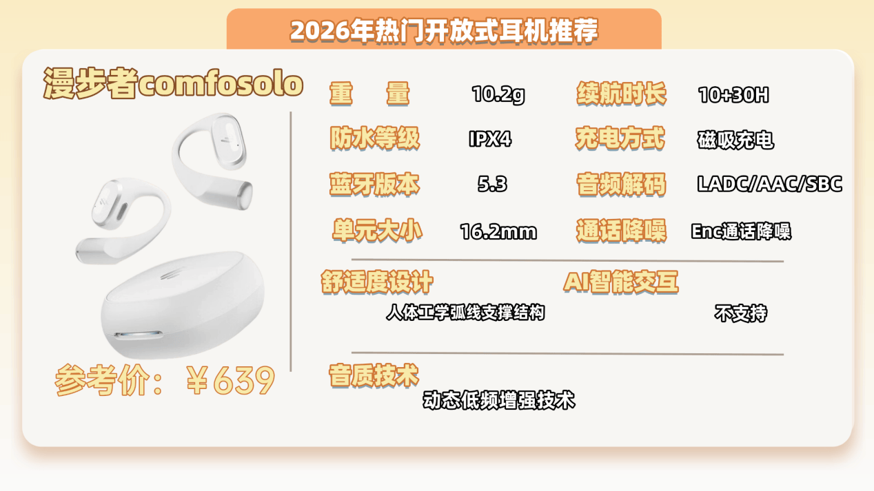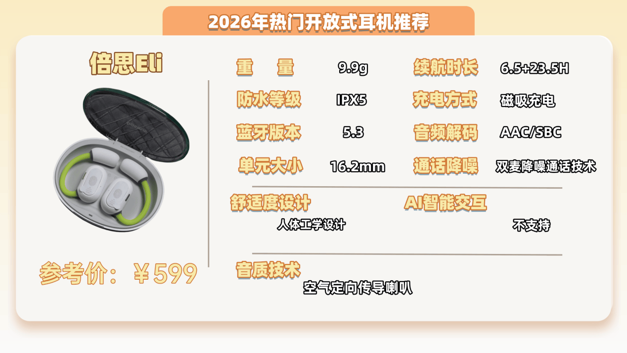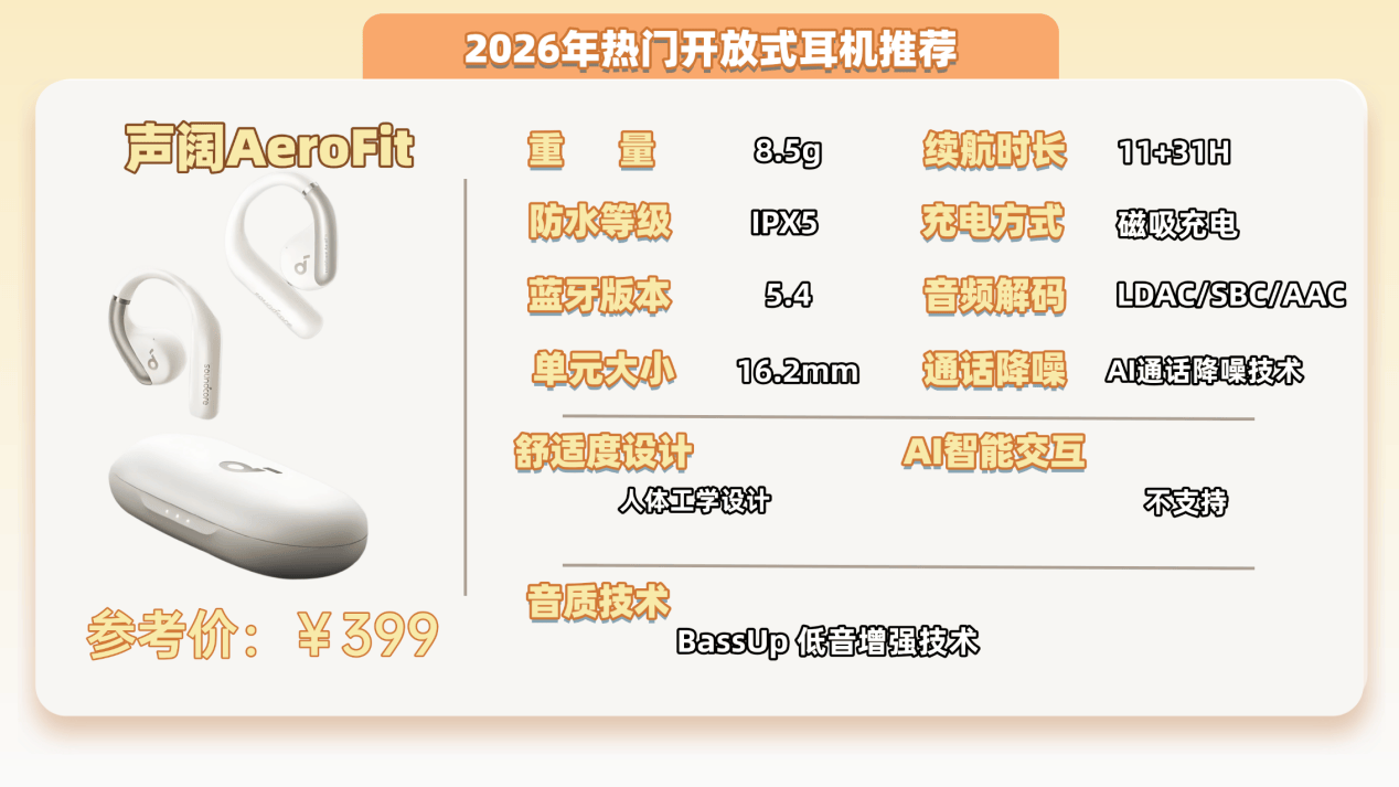 推荐理由:5.1g超轻机身久戴不累,AI降噪通话清晰