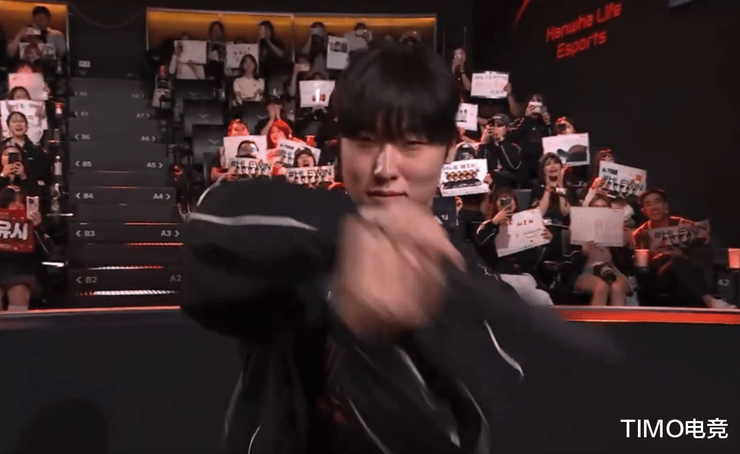 HLE觉得2比0碾压还不够,赛后的庆祝场面引爆全场!Gumayusi对着镜头做出了摇手指的庆祝动作,狂气十足地挑衅全场。
