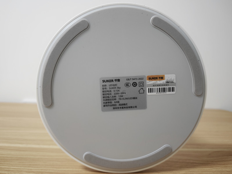 底座有大面积缓冲垫,保证稳定性,移动无噪音,中间标注产品参数,光学等级是国标AA级。