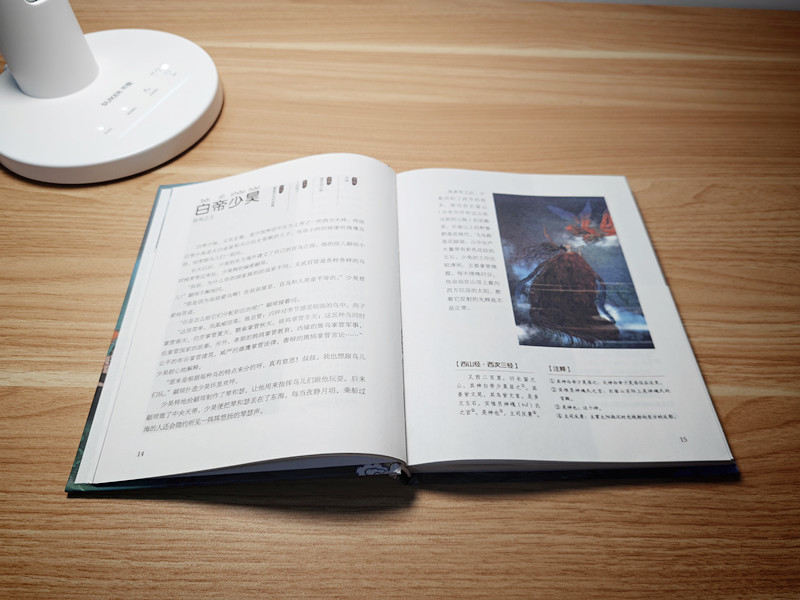 再来看下照明效果,可以看到灯光下文字和图片显示更加的自然真实,这里主要是台灯采用了第四代高品质护眼光源,99.6%还原自然之光,CRI显色指数更加高,越高就越接近自然光线效果,自然可以还原事物的真实色彩。