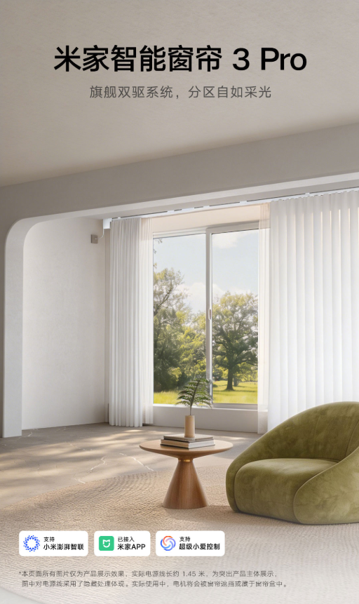 米家智能窗帘3 Pro立足用户核心需求,专门针对精细化采光、家居适配与智能体验痛点推出系统解决方案。左右独立分控、旗舰双驱强劲静音、多种便捷控制、灵活场景适配、纤薄高颜值设计及便捷安装体验,让它成为兼具实用性与性价比的优质选择。作为小米智能家居矩阵的重要成员,该产品凭借差异化核心优势和亲民价格,让更多家庭能够轻松享受便捷、舒适的智能窗帘体验,用细节呵护日常,为居家生活增添更多质感与便捷。