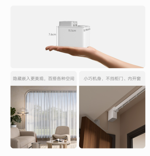 机身采用纤薄设计,比同类产品更小巧,可轻松隐入窗帘盒,不挡柜门和内开窗。简洁大气的外观适配现代简约、轻奢、北欧等多种家装风格,成为墙面“隐形美学”单品。产品采用拼接轨道设计,无需上门测量定制,专业工程师一次上门即可完成拆旧装新,安装便捷高效。