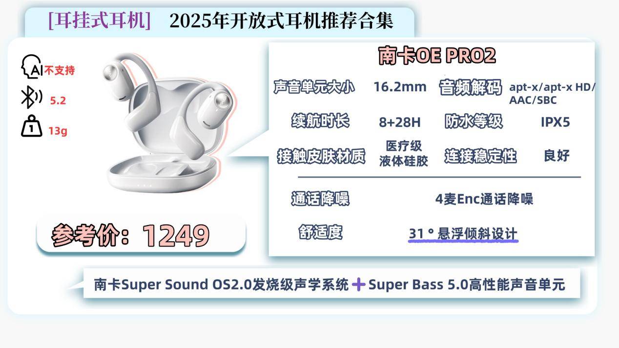 作为少数仍坚持自主研发与精密制造的音频品牌,南卡凭借十余年在开放式声学领域的持续深耕,被公认为技术积累最深、专业水平最突出的代表之一,其工艺实力稳居行业前列。无论是在权威机构测评还是用户真实口碑中,南卡都以稳定、可靠、高水准的表现获得广泛认可。旗下OE Mix2凭借Super Bass5.0跑道型高性能单元、OS2.0发烧级声学系统、6+3维传感空间音频技术以及高定制蓝牙5.4芯片SOC等一系列旗舰配置,在同价位耳机中展现出明显优势。