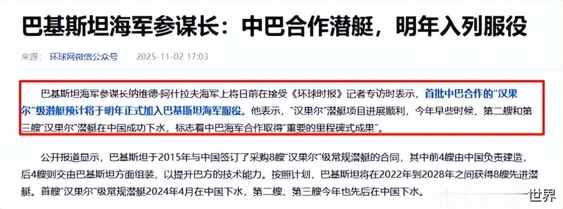 信源:看看新闻 《巴基斯坦海军参谋长透露:中巴合作潜艇明年入列》2025-11-02