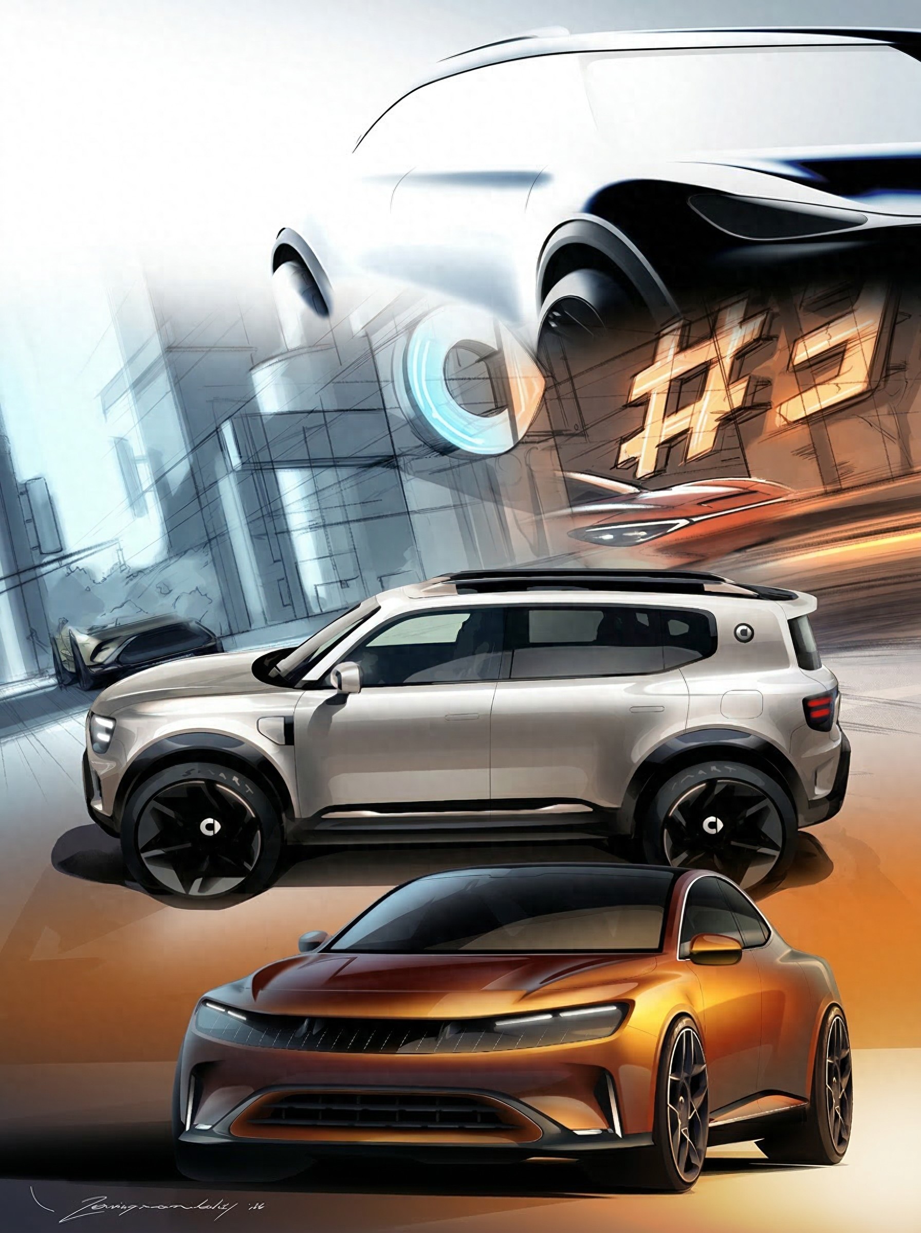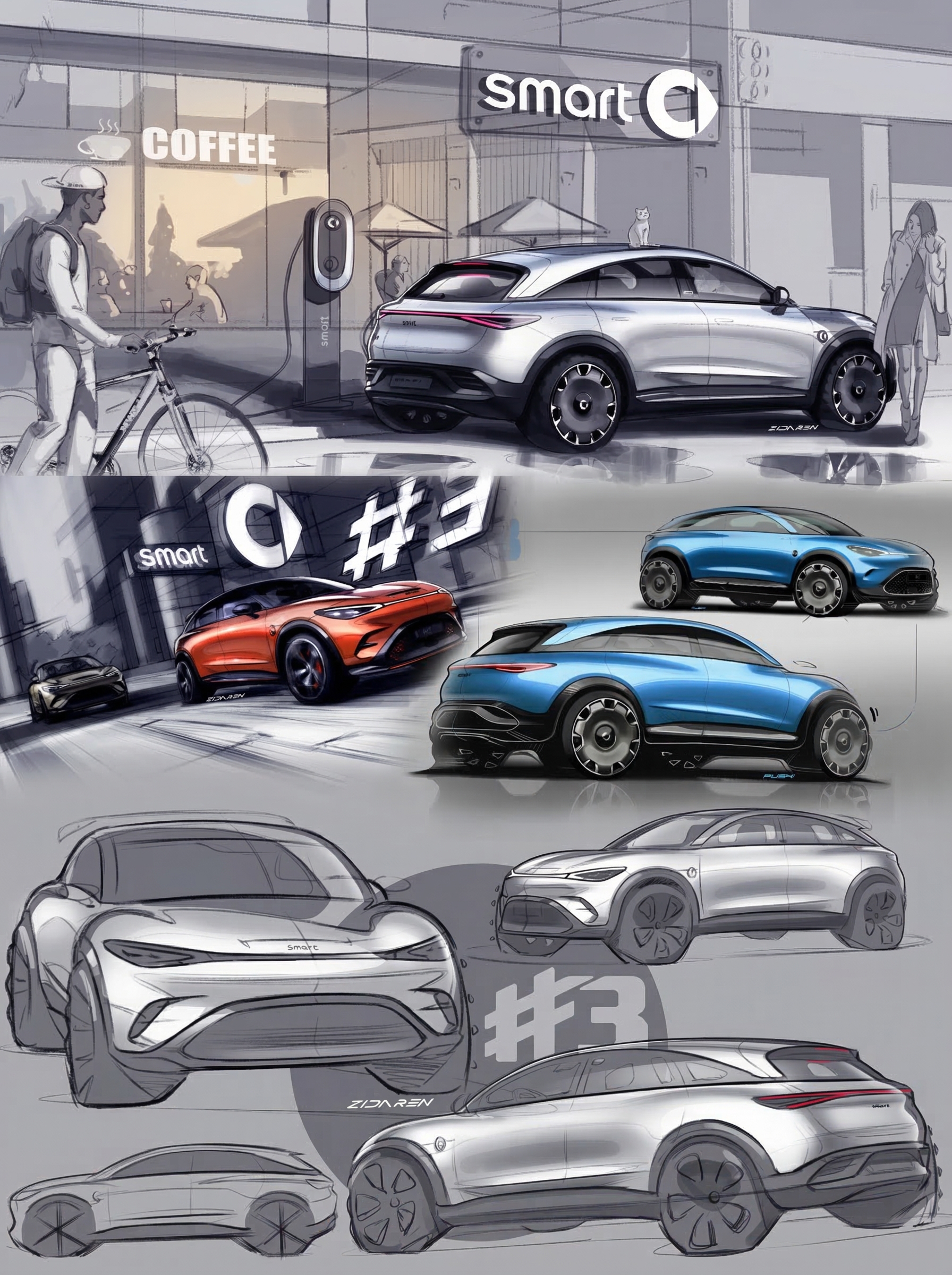 千篇一律的车圈,smart真的太与众不同了 瓦格纳在奔驰的收官之作#6 EHD,和#1、#3、#5同框,四款车各有特色,没有一丝雷同,用原创引领掀背美学潮流。瓦格纳的“感性·纯粹”是根基,让奔驰从“被敬仰”变成“被热爱”,而smart的“感性·灵锐”,更是让每款车都鲜活有力量。#1、#3温柔亲和,主打热爱;#5、#6凌厉利落,聚焦纯粹,#6作为首款掀背,线条凌厉、姿态大气,流体力学设计又美又实用,四轮四角兼顾灵动与舒适,不跟风、不复制,用原创定义豪华,这就是smart的魅力~