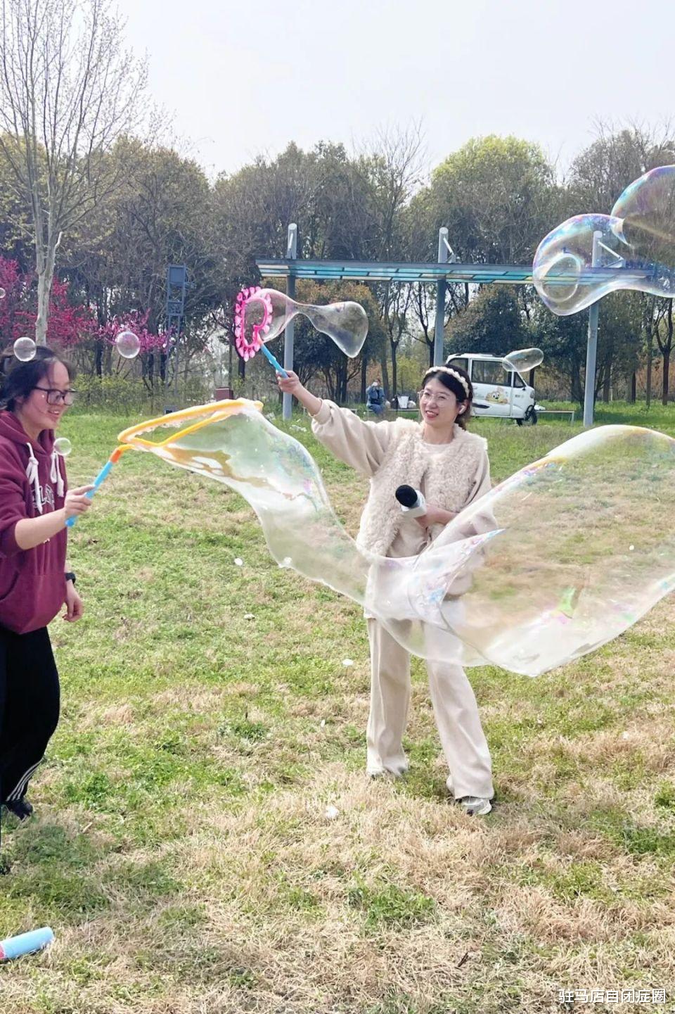 崔老师、吴老师带来晶莹的泡泡液和多样的泡泡棒,孩子们认真模仿吹泡泡的动作,追逐着阳光下的七彩泡泡,眼里满是好奇与欢喜。简单的游戏,既能锻炼肺活量、培养观察力,也能舒缓情绪,用温柔守护孩子成长。