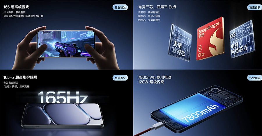 该机核心配置上,搭载了6.78英寸的1.5K 165Hz高刷屏,不仅刷新了手机屏幕的超高刷新率记录,更在全球范围内首发了第三代东方屏。这块屏幕不仅在日常使用中带来极致流畅的体验,还在游戏中大幅提升了胜率,首批适配了微博、微信、小红书等热门应用,未来还将覆盖更多场景。