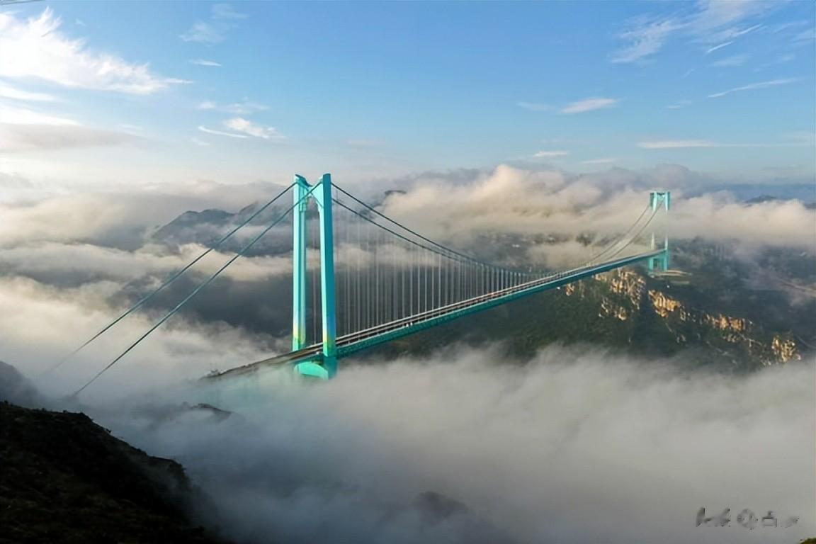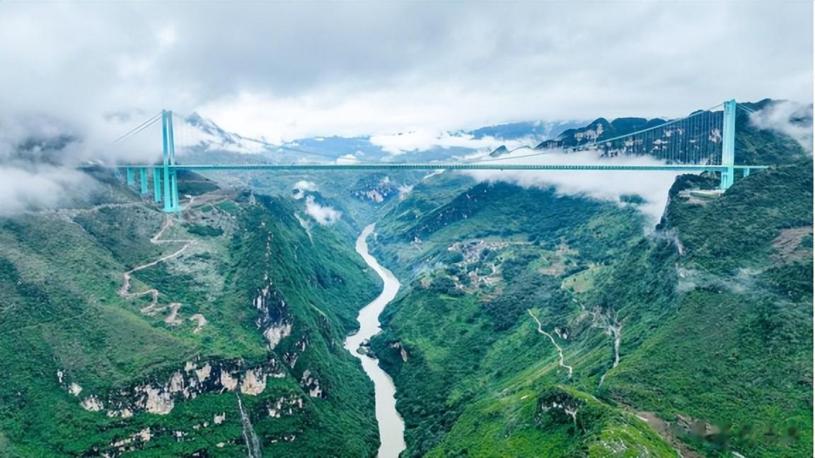 花江峡谷大桥在9月28日通车,桥面离河谷625米,主跨1420米,山区桥梁里横竖第一。通车那天,无数车辆过桥,成了当地交通要道,中国用这对外展示实力。