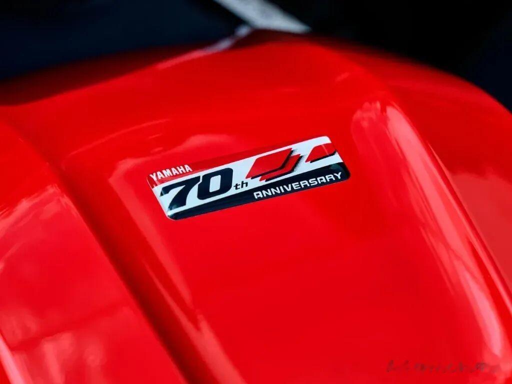 Yamaha的70周年纪念配色,是以1999年限量贩售的赛车规格版YZF-R7(OW-02)的涂装为基础,红白相间的组合,令人联想起1990年代Yamaha所发表的众多革新性Supersport车款。