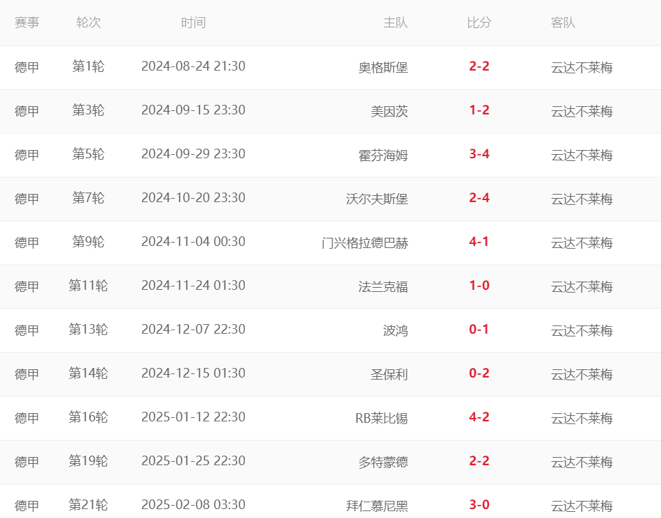 上轮对霍芬海姆,不来梅原本先破门,取得了不错开局,随后连丢三个,1比3后也只有一次门框有一定机会缩小分差。很难有比较恰当的理由来解释不来梅的走势,或许中游比较舒服的位置,让他们在动力上有所欠缺。