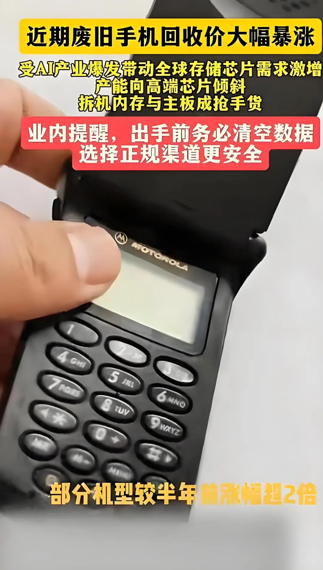 几乎每家都有的闲置旧手机,最近身价飞涨。原本只能免费回收的古早款手机、老人机,近期都可以卖到几元到几十元;大内存的旗舰机型回收价涨幅更为明显,部分机型相比年初上涨了两三百元。厦门多家手机回收商表示,只要是手机就照单全收,无论品牌型号,也不管是否能够正常开机。从“电子垃圾”到抢手可回收物,这波二手手机回收热潮背后的推手,正是内存及手机配件的价格上涨。