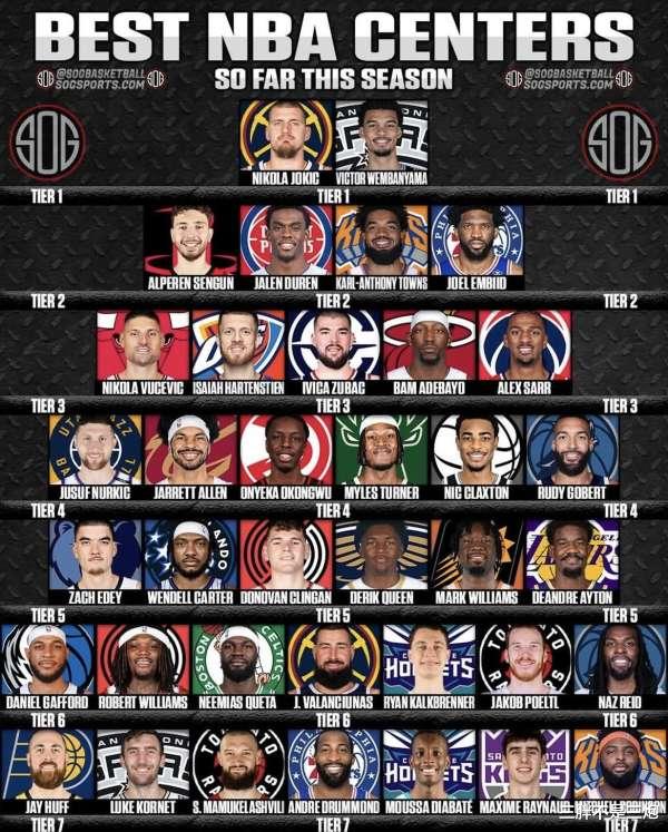 那么以上就是美国体育媒体Socsports评选出的本赛季各档中锋划分图,不知道各位对此怎么看呢?欢迎您在评论区留言,只要理性客观三胖随时恭候您的到来~~