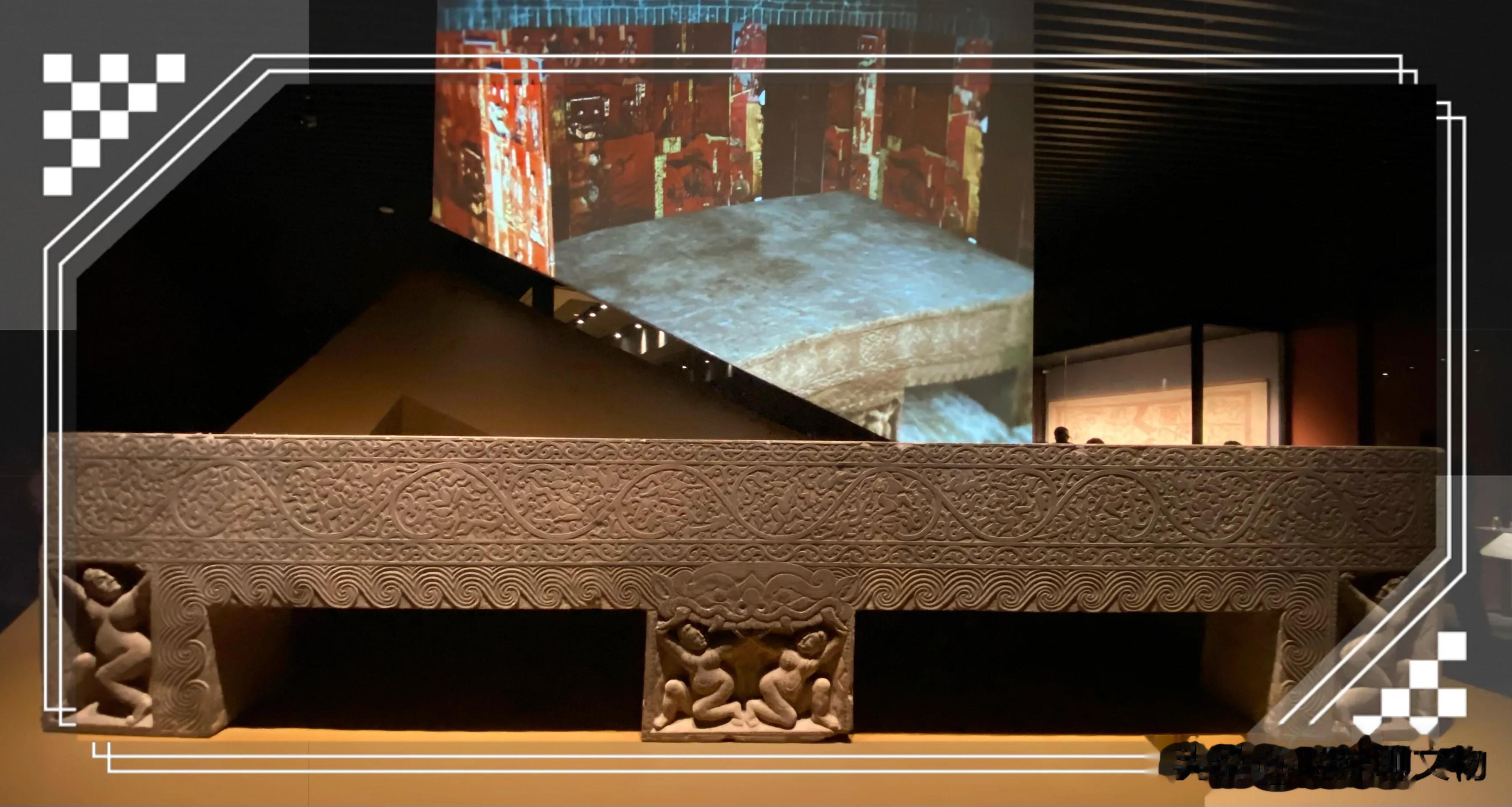 棺床以青石雕成,四周刻有繁复的缠枝纹与神兽图案,线条流畅,刀法精湛。细观之,可见仙人骑龙、伎乐天等形象,充满动感与灵气,展现了北魏时期多元文化交融的艺术特色。