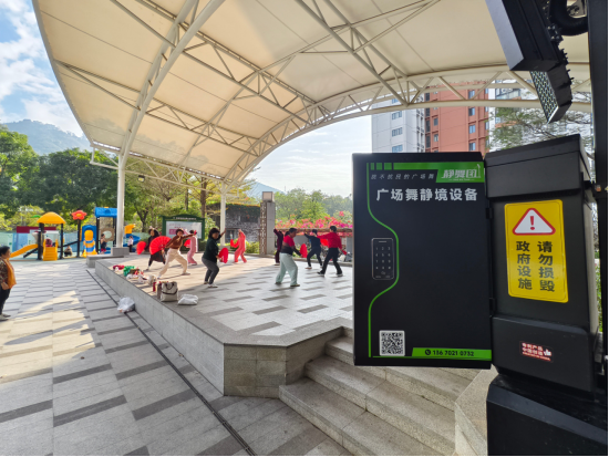 宝安航城街道利锦公园作为多个住宅小区居民的核心休闲空间,是大家晨练健身、文体娱乐、亲子互动的重要场所。公园内的中心广场每日活跃着多支广场舞、健身操队伍,传统外放音响的无差别扩音问题,让紧邻公园的居民楼深受噪声干扰,邻里矛盾时有发生,噪声投诉一度成为社区治理的常见难题。为响应科技赋能民生治理的理念,兼顾居民文体活动需求与社区声环境品质,利锦公园管理方引入静境定向音响系统,以声学科技实现社区公园声音空间的精细化治理,打造睦邻和谐的公共休闲环境。