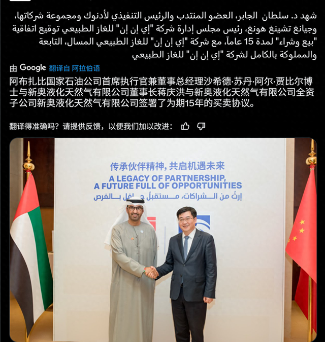 阿布扎比国家石油公司(ADNOC)与中国企业签署的15年LNG天价协议,堪称中东能源史上最重磅交易。每年100万吨液化天然气直供中国,不仅刷新中阿合作纪录,更标志着全球能源权力中心加速东移。