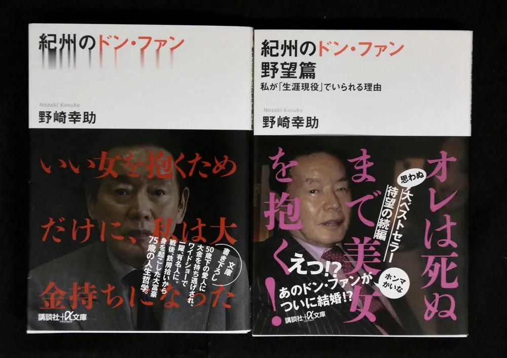 2016年,野崎还出版了一本名为《纪州的唐璜——为4000名美女花费30亿的男人》的自传,描写如何聘请“经纪人”团队,为自己四处猎艳,并花钱和4000名异性发生关系的过程。