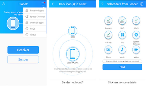 3. CLONEitCLONEit 是一款手机克隆应用,可轻松将旧手机中的多达 12 种数据类型复制到新手机。它使用 Wi-Fi 热点进行传输,无需消耗您的移动数据流量。