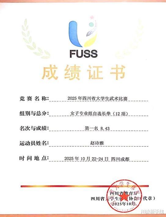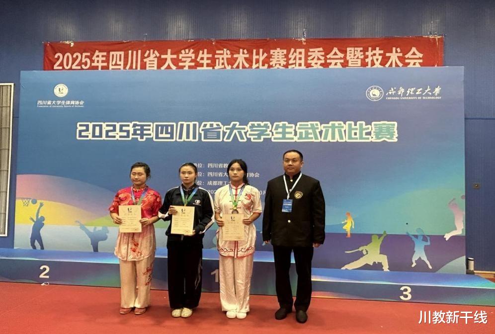 近日,由四川省教育厅主办、四川省大学生体育协会执行、成都理工大学承办的2025年四川省大学生武术比赛在成都城东体育公园成功举行,来自55所高校的419名运动员在激烈的角逐中展现了当代大学生扎实的武术技艺与朝气蓬勃的精神风貌。四川工商学院武术代表队在此次比赛中荣获骄人成绩。