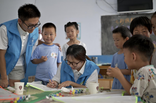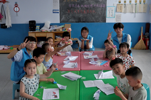 以科技启蒙为钥匙、文化传承为底色、智能创意为画笔,为幼儿园留守儿童构筑起立体多元的成长体验空间。7月2日-7月9日,潍坊学院鸢飞筑梦志愿服务队在潍坊安丘市郚山镇马朗沟村为30余名留守儿童带来特色实践活动。从光电小车在轨道上划出的科技弧线,到非遗风筝蒙面跃动的传统色彩,再到AI绘画界面闪烁的创意微光,志愿者们用专业化、趣味化的设计,让抽象知识转化为可触摸、可感知的成长印记。