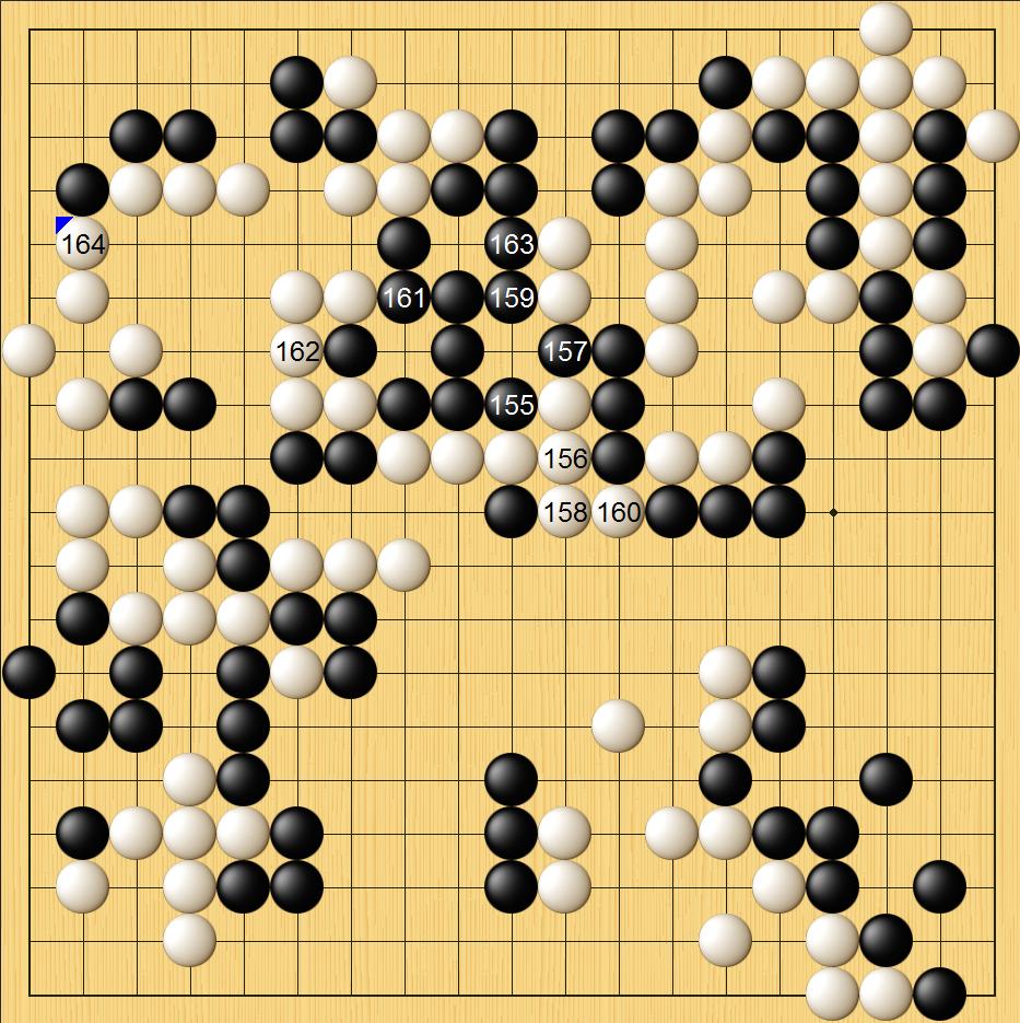 开局后两人很快展开激战,朴廷桓在上方追击白棋。第111手白棋出现判断失误,如果在第150手处分断则白棋将陷入超级苦战。