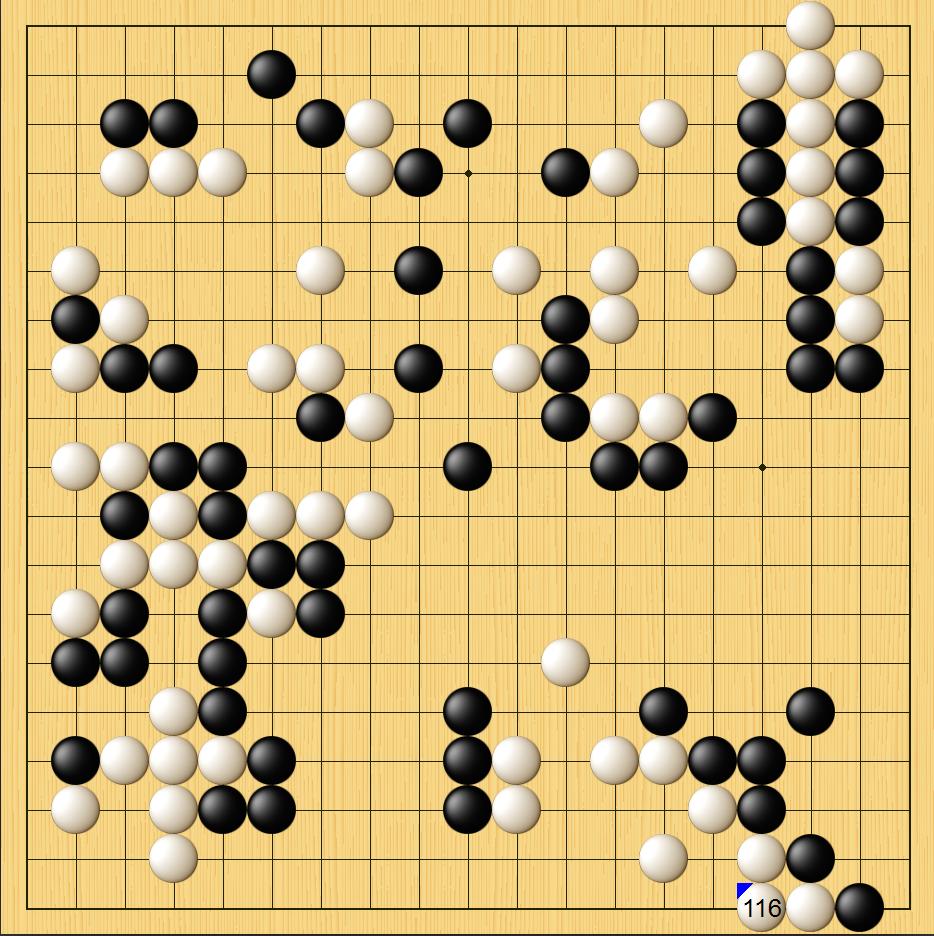 黑棋第113手又是明显的问题手,应该在第116手打。廖元赫的白第114手后,就确立了比较明显的优势。
